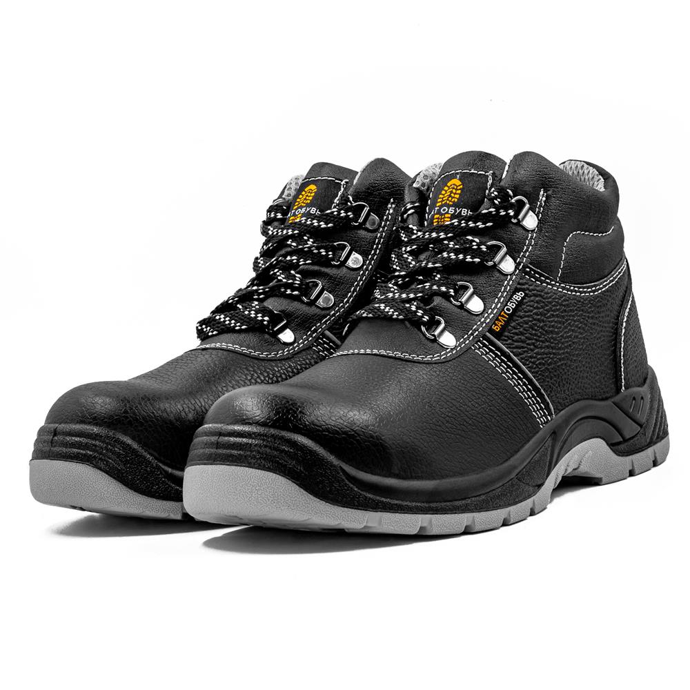 Демисезонные защитные ботинки на двухслойной ПУ/ПУ (полиуретановой) подошве - отличный выбор для работников от сельского хозяйства до горно-металлургической промышленности. Обувь изготовлена из натуральной юфтевой кожи устойчивой к воздействию агрессивных внешних факторов. Носок защищен металлическим подноском с ударной нагрузкой до 200 Дж. Подошва изготовлена литьевым методом, устойчива к воздействию кислотно-щелочных веществ (до 20%), масло-бензольных соединений и нефтепродуктов. Рабочая температура эксплуатации ботинок от -35°С до +85°С. Дополнительный комфорт для ног и защиту от ударных нагрузок обеспечивают амортизатор в пяточной части ботинка и мягкий кант, защищающий голеностоп. Глухой клапан предотвращает попадание нетоксичной пыли, влаги и грязи внутрь. Анатомическая стелька из ЭВА обеспечивает комфорт носки и снижает нагрузку на суставы ног