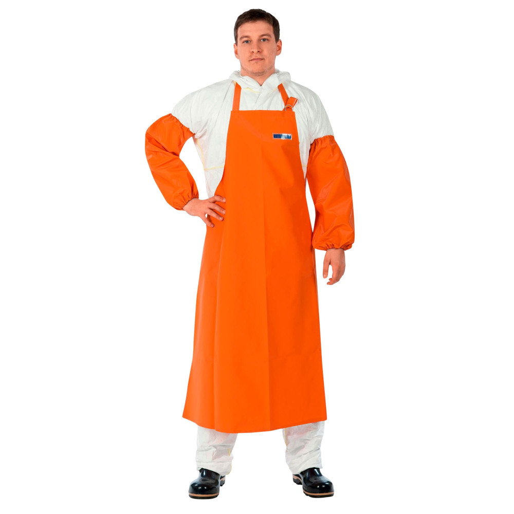 Длинный и удобный фартук изготовлен из специальной прочной ткани с ПВХ-покрытием.