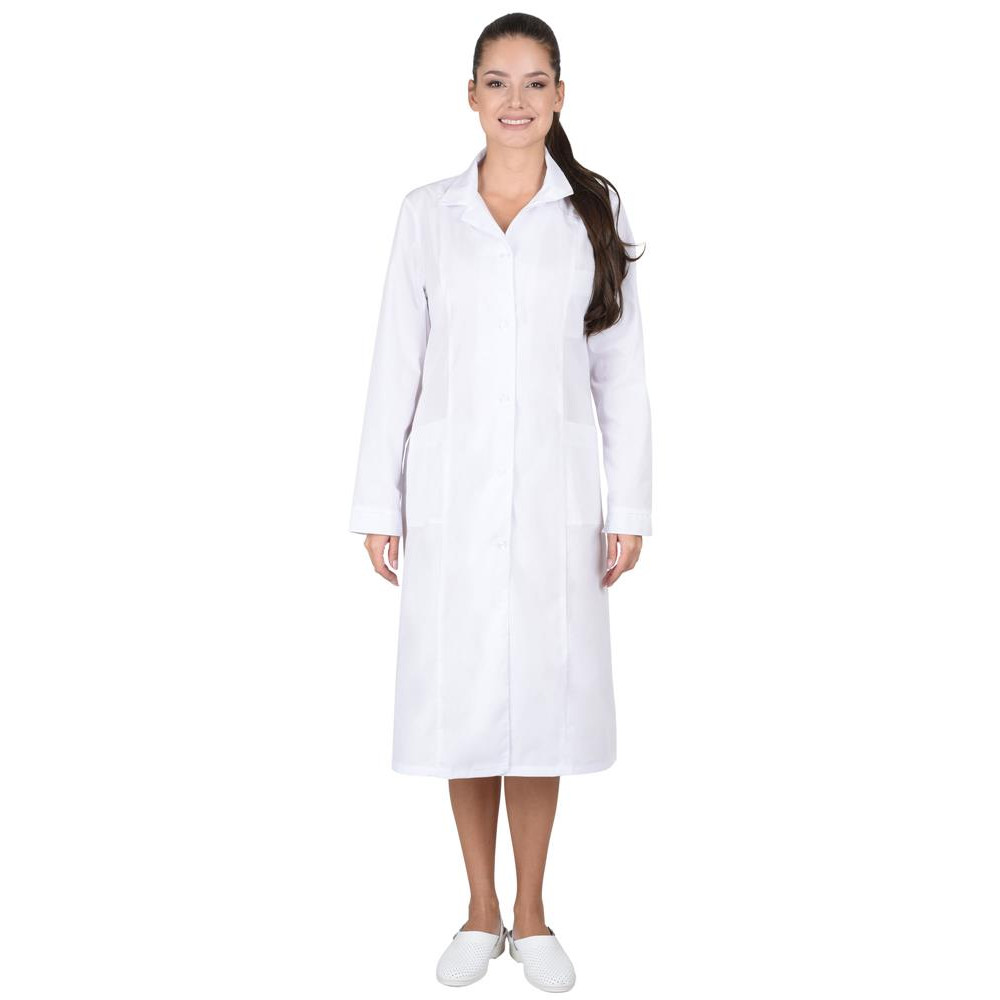 длинными рукавами с манжетами. Ширина халата по линии талии регулируется