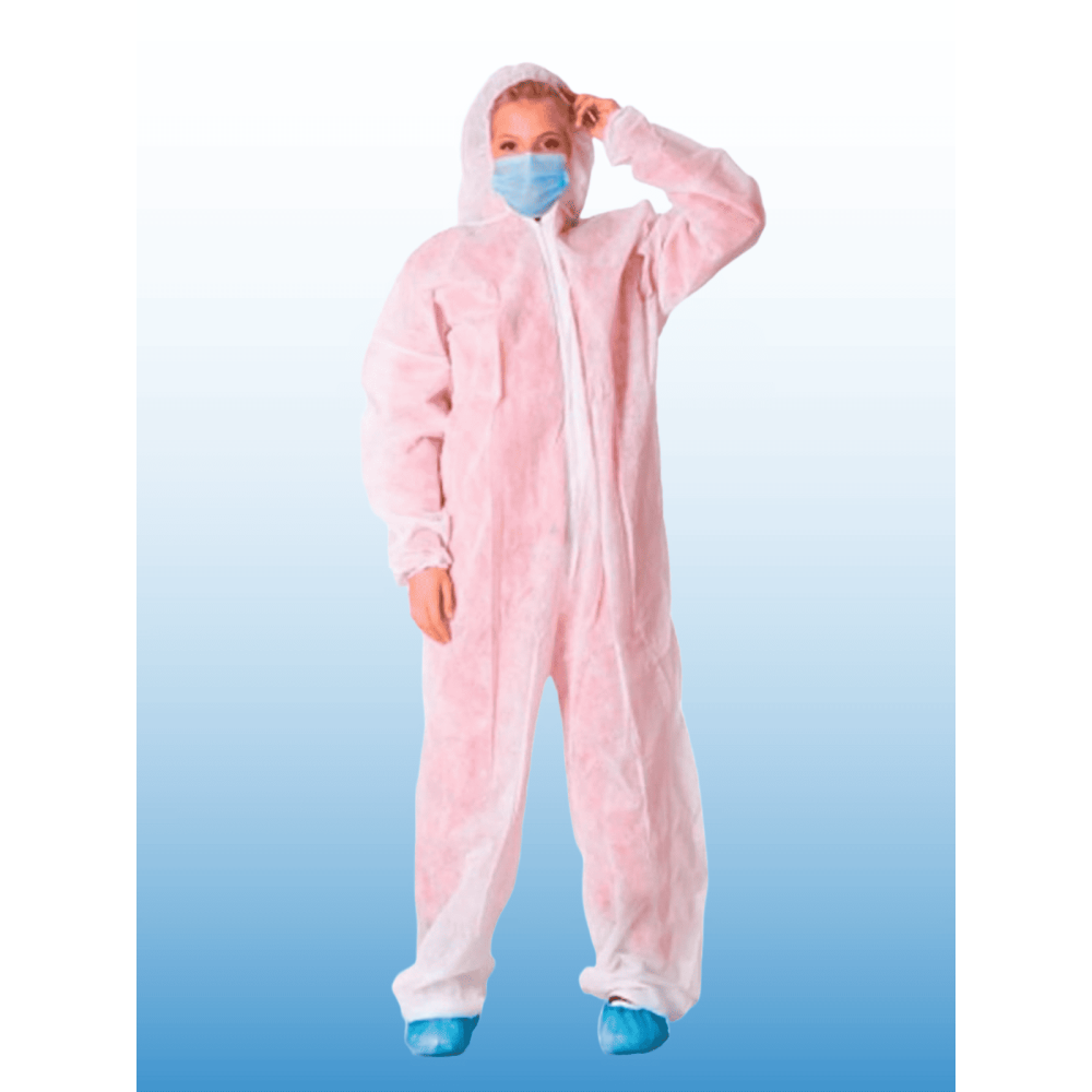 Одноразовый комбинезон белого цвета изготовлен из гипоаллергенного нетканого материала спанбонд плотностью 30гр/м.кв.