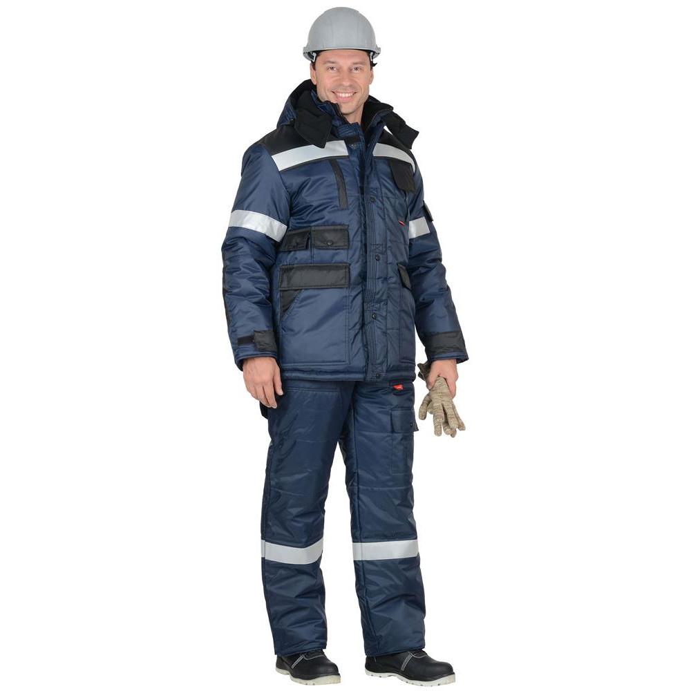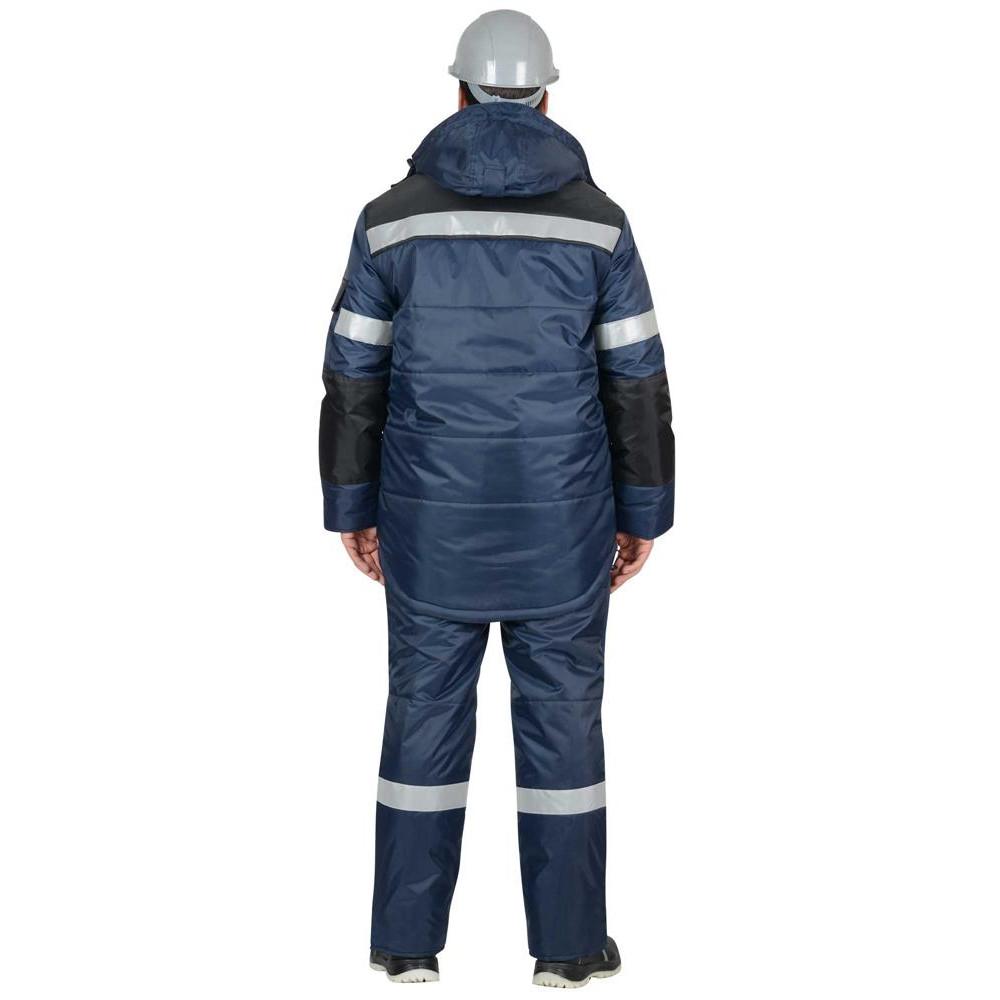 Костюм зимний состоит из удлинённой куртки и полукомбинезона. В костюме предусмотрена светоотражающая лента для обеспечения видимости работающего в тёмное время суток.