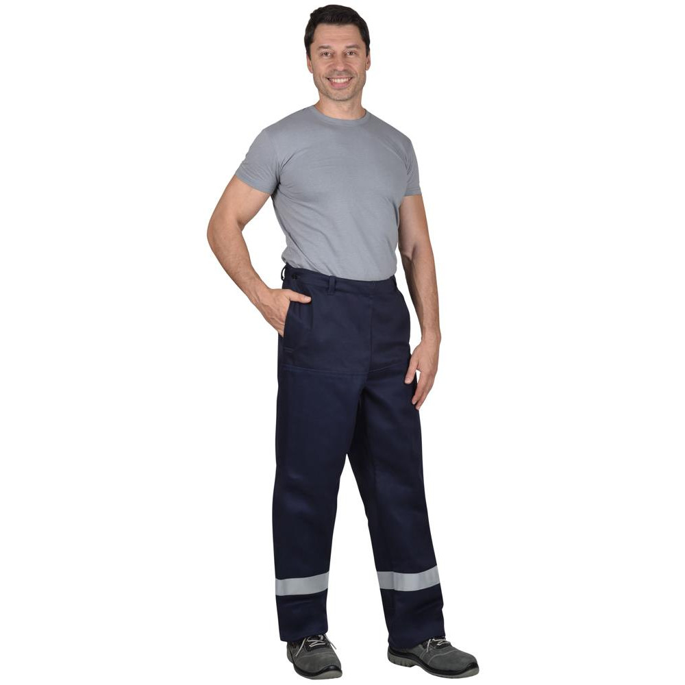 Брюки прямые, с застёжкой на пуговицы в боковых швах, с внутренними боковыми карманами, с вентиляционными отверстиями по шаговым швам в области сидения. Брюки с накладками на передних половинках переходящими по бокам на задние половинки и с накладками на задних половинках понизу и шаговым швам.