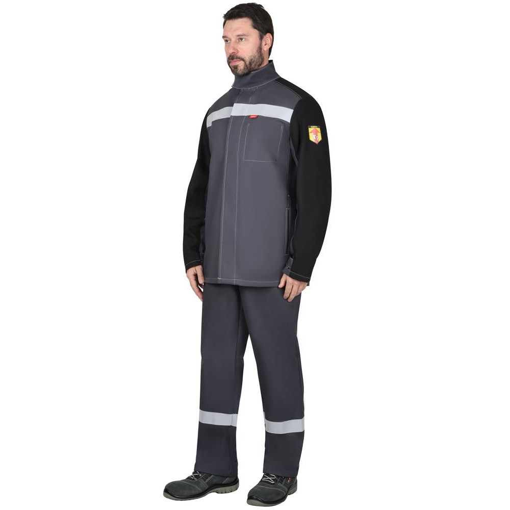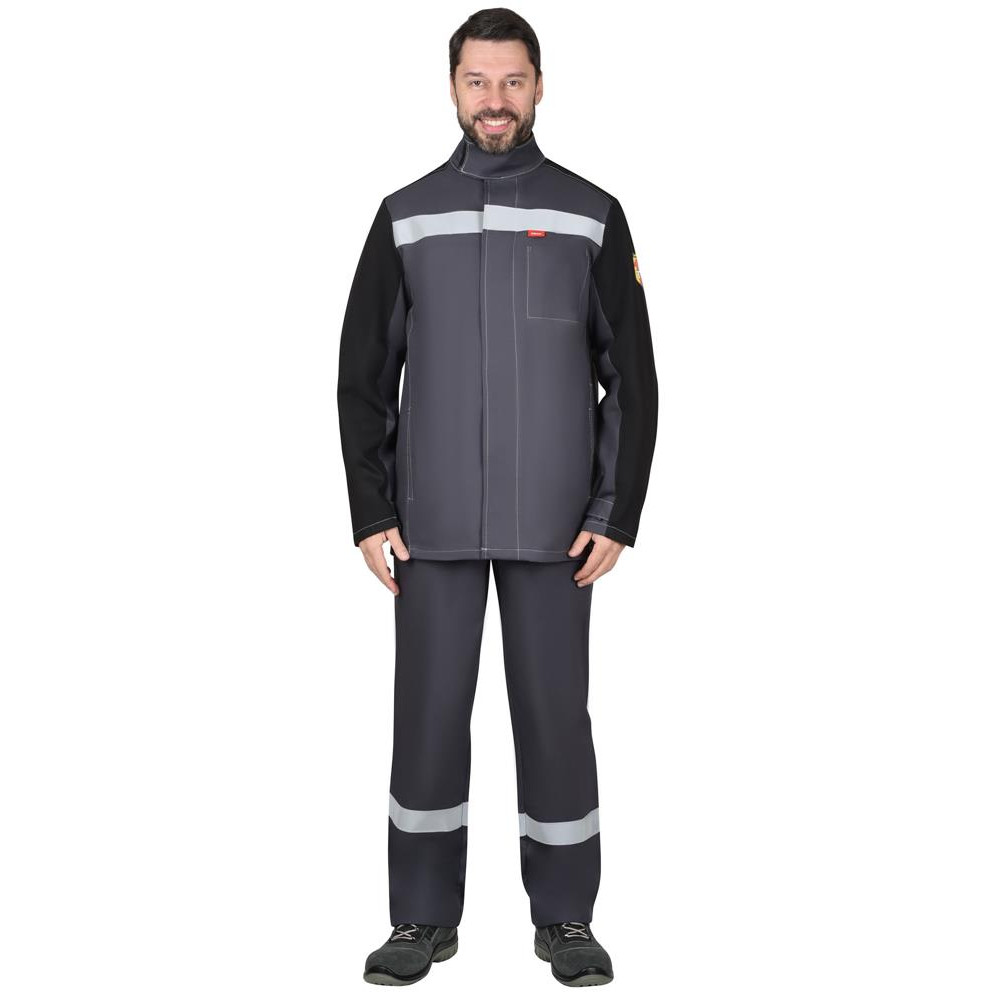 Костюм, комбинированный из двух тканей с огнестойкой лентой СОП шириной 50мм для обозначения сигнальной видимости.