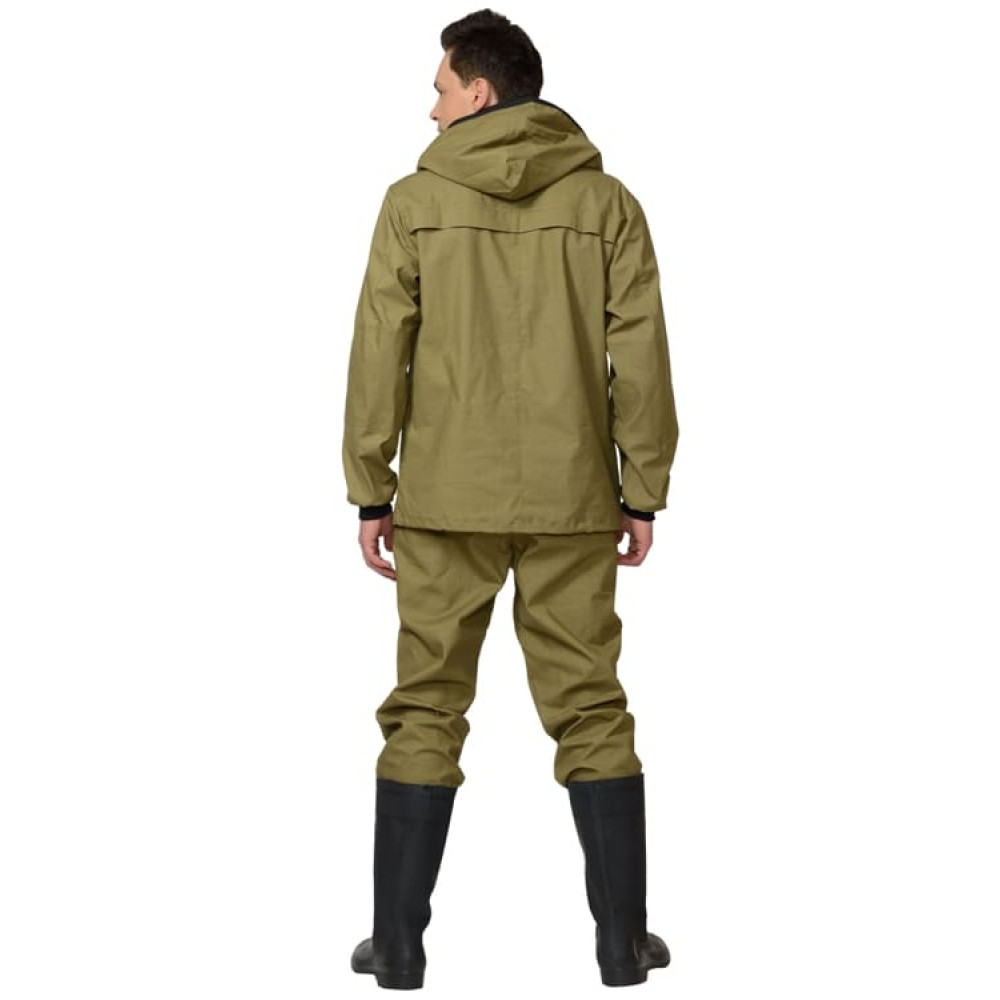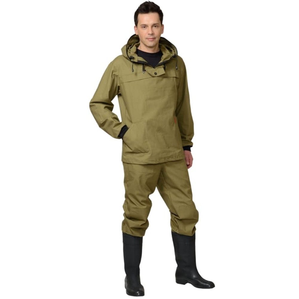 Куртка с притачным капюшоном с противомоскитной сеткой и накладным нагрудным карманом, в который при необходимости можно спрятать противомоскитную сетку. Рукава с трикотажной манжетой, ширина куртки внизу регулируется. Брюки с цельнокроеным поясом, стянутым эластичной лентой, с 4-мя шлёвками, с наколенниками, с накладным карманом с клапаном, застёгивающимся на ленту "контакт", низ брюк с трикотажными манжетами.