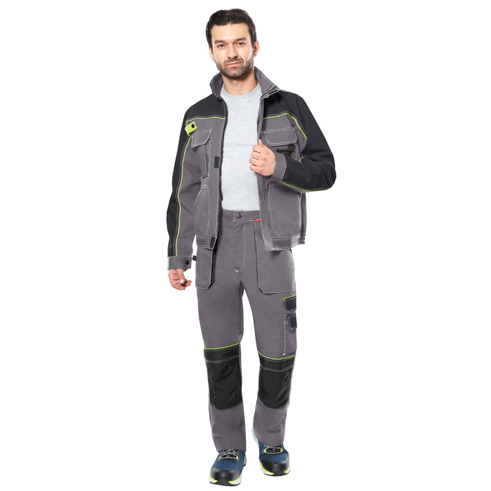 Брюки прямые с застёжкой спереди на гульфик с молнией, с отрезным поясом, с накладными карманами спереди, сзади и на боковых швах, с объёмными наколенниками из плотной, непромокаемой ткани с верхним входом для амортизационного вкладыша.