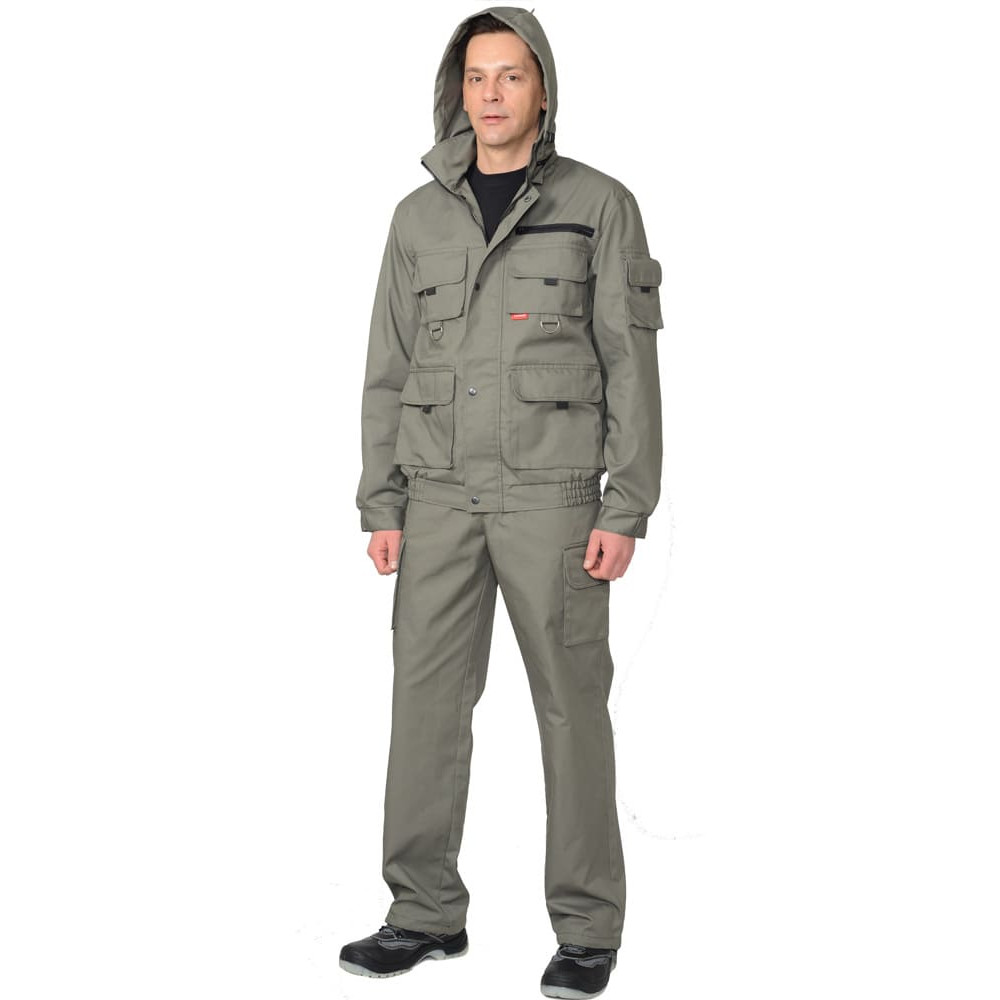 Куртка короткая, прямого силуэта, с центральной застёжкой на молнию накрытой ветрозащитным клапаном, воротник стойка, пристёгивающимся капюшоном, различными многофункциональными накладными карманами с клапанами. Рукава с манжетами и патой регулирующий ширину. Низ куртки с притачным поясом стянутым, частично, резинкой. Брюки прямые с притачным поясом стянутым, частично резинкой и застёгивающимся на пуговицу, со шлёвками, застёжкой гульфика на молнию, с различными функциональными карманами. Низ брюк регулируется эластичным шнуром. Ткань: «Родос» 65% п/э, 35 % х/б, пл. 240 г/м.ГОСТ 12.4.280-2014