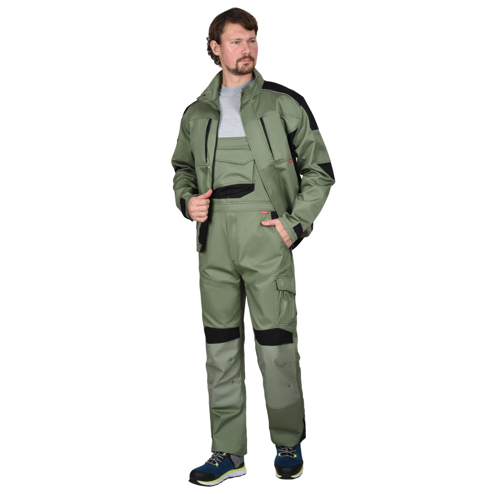 Состав 65% ПЭ, 35% ХБ | Ткань верхаСмесовая с ВО пропиткой, 240 г/кв.м | Цветоливковый, цвет отделки — черный |