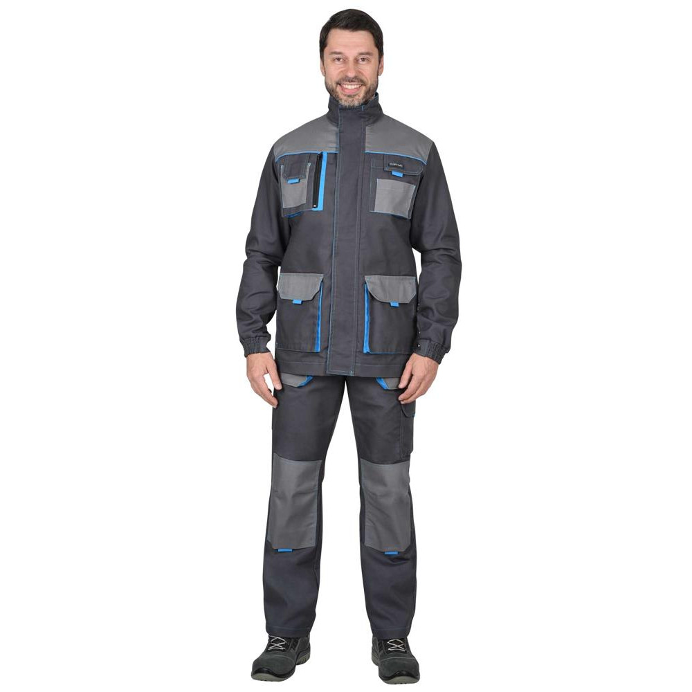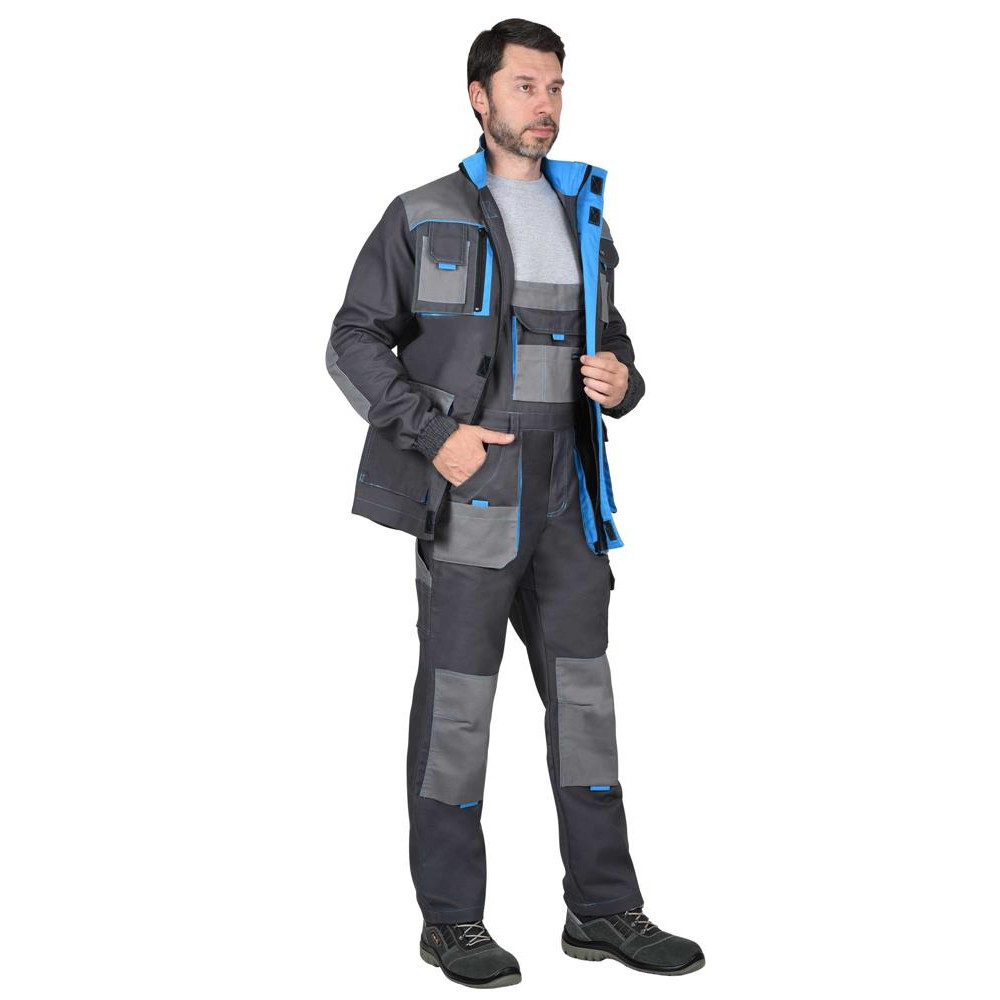 Костюм имеет множество многофункциональных накладных комбинированных объемных карманов с контрастной отделкой. На манжетах рукавов и в области талии на полукомбинезоне по всей ширине вставлена резинка для лучшего прилегания к телу. Куртка снабжена качественной центральной бортовой застёжкой на молнию. Объемные наколенники защищают колени от сквозного истирания. Костюм хорошо зарекомендовал себя в работе и является популярной моделью.