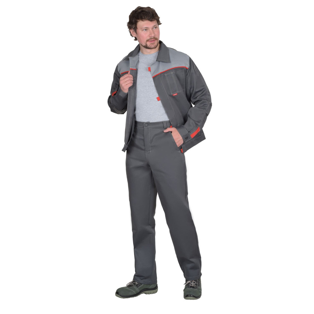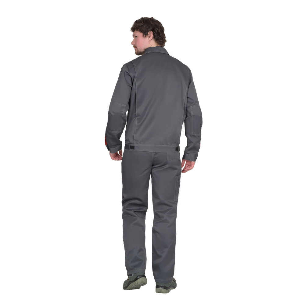 Брюки прямого силуэта, на поясе, со шлевками, с застёжкой спереди на молнию, с боковыми карманами на передних половинках, с задним карманом и с двойными накладными карманами для инструментов на правой задней половинке. Объем пояса регулируется хлястиками с липучками по боковым швам.