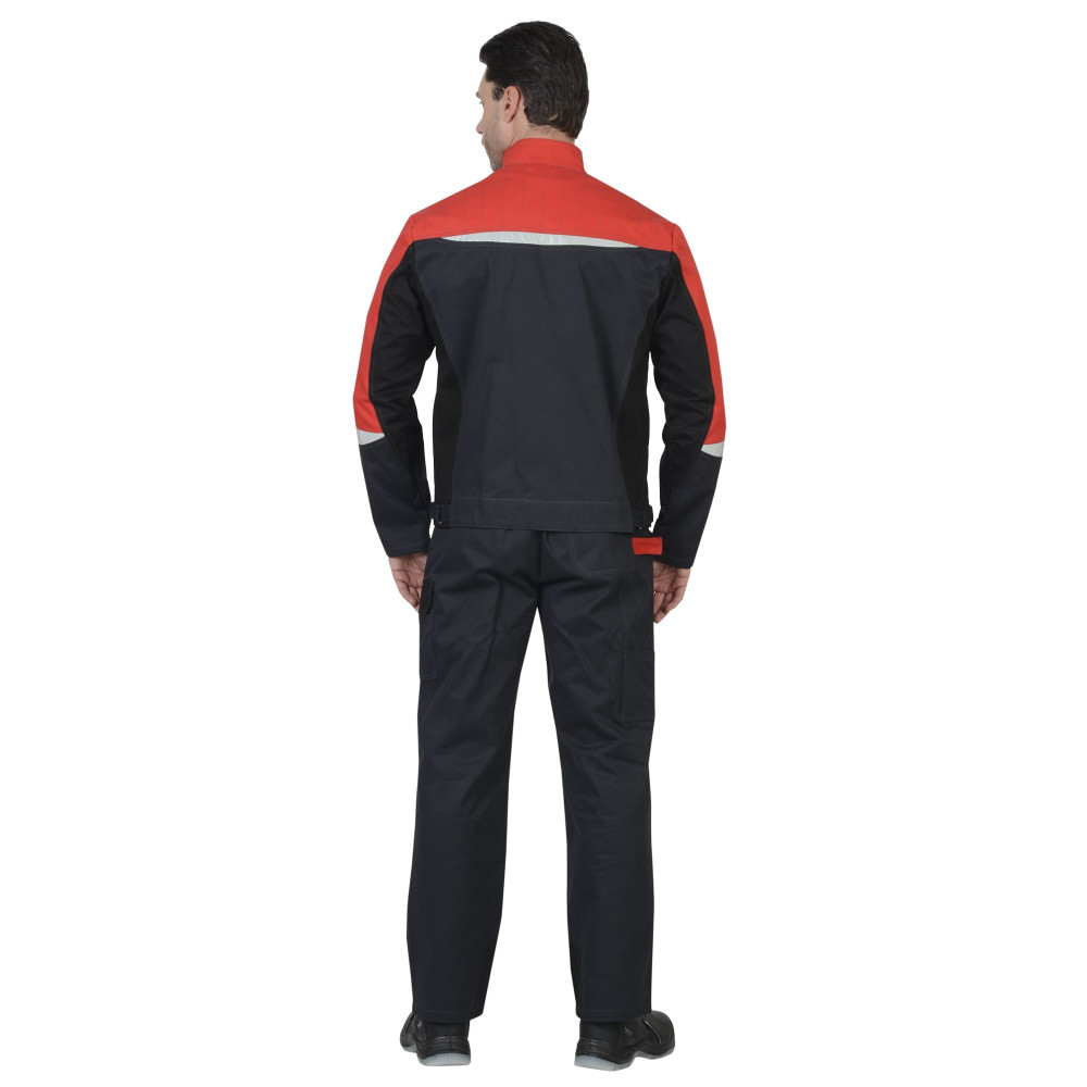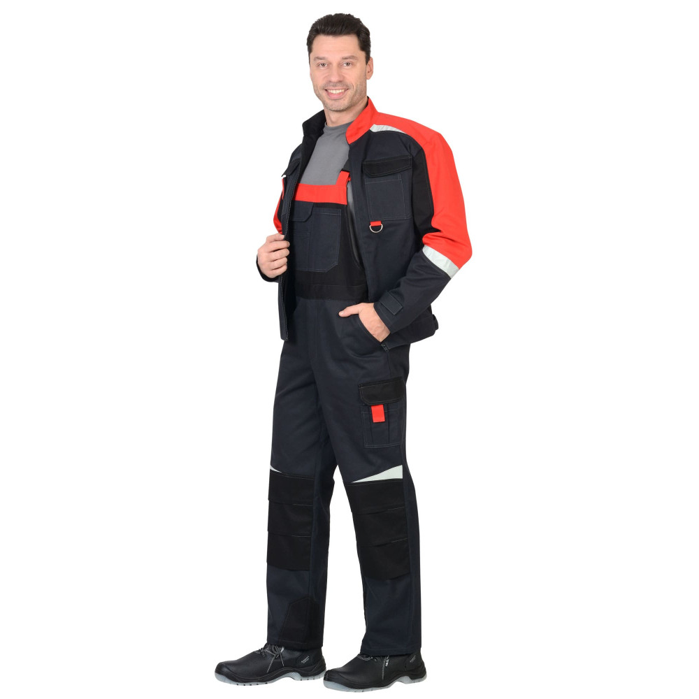 Комбинация цветов в костюме позволяет достичь удобства в эксплуатации: темный цвет – в сильно загрязняемых местах, яркий цвет - акцент дополнительной видимости на отдаленном расстоянии. Костюм с фигурной лентой СОП для обозначения сигнальной видимости.
