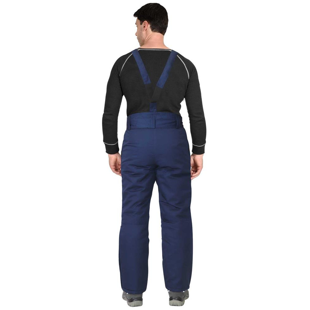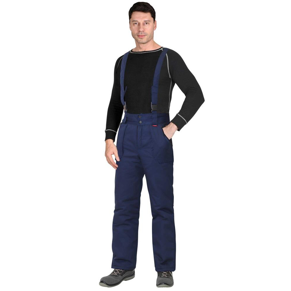 Брюки зимние универсальные прямые, утепленные, с застежкой гульфика на молнию, с притачным фигурным широким поясом с застежкой на две пуговицы и пристегивающимися брителями, сзади на пуговицу, спереди на фастексы. Изделие с боковыми объемными фигурными накладными карманами на молнии. По низу боковых швов разрез, застегивающийся на молнию, коротая накрыта втачной планкой, со стороны подкладки разрез закрыт втачной вставкой из основной ткани.