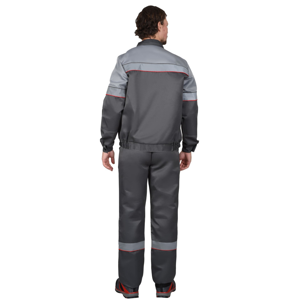 Куртка, укороченная, прямого силуэта, на поясе. Куртка с центральной потайной застёжкой на пуговицы, с отложным воротником, с одним нагрудным и двумя нижними карманами, с втачными рукавами с манжетой на пуговице. В куртке предусмотрена лента светоотражающая ш.50 мм для сигнальной видимости.