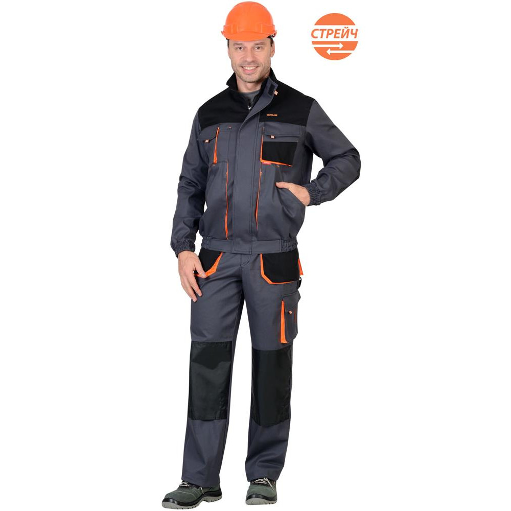 х/б, 2% эластан, поверхностная плотность 250 г/м2. Цвет: темно серый