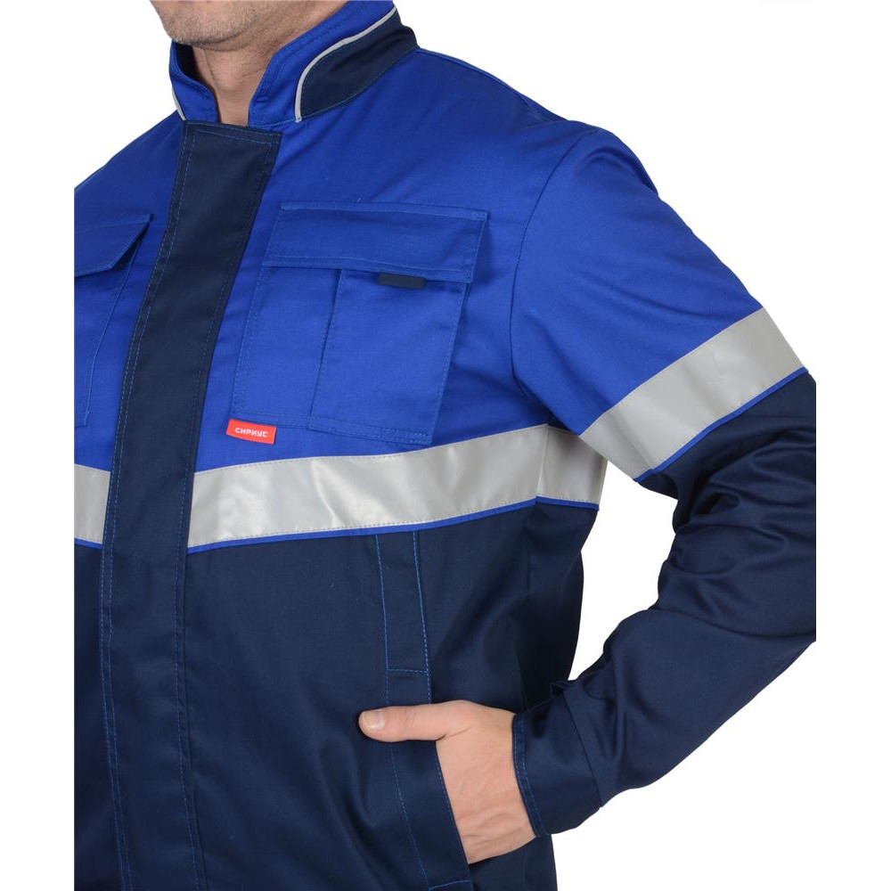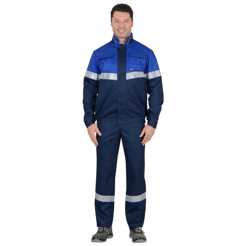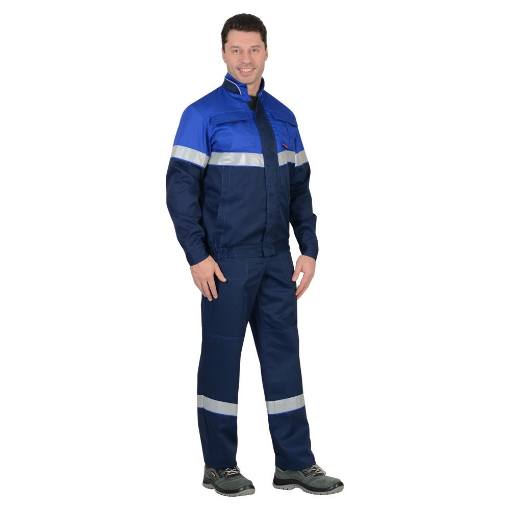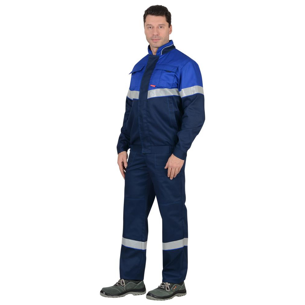 Мужской летний костюм "СИРИУС-НАВИГАТОР" с васильковой отделкой для защиты от общих производственных загрязнений и механических воздействий.