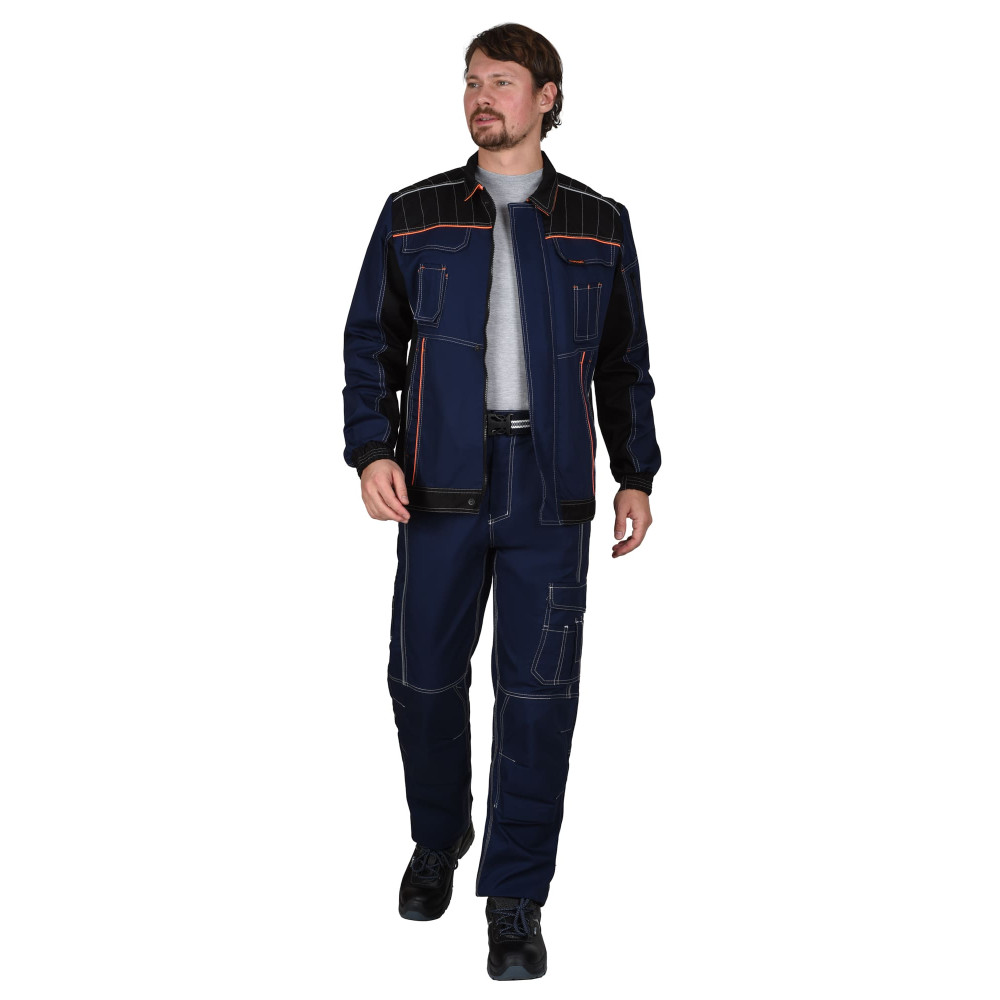 Костюм СИРИУС-ПРЕСТИЖ куртка, брюки, синий с черным и оранжевой отделкой