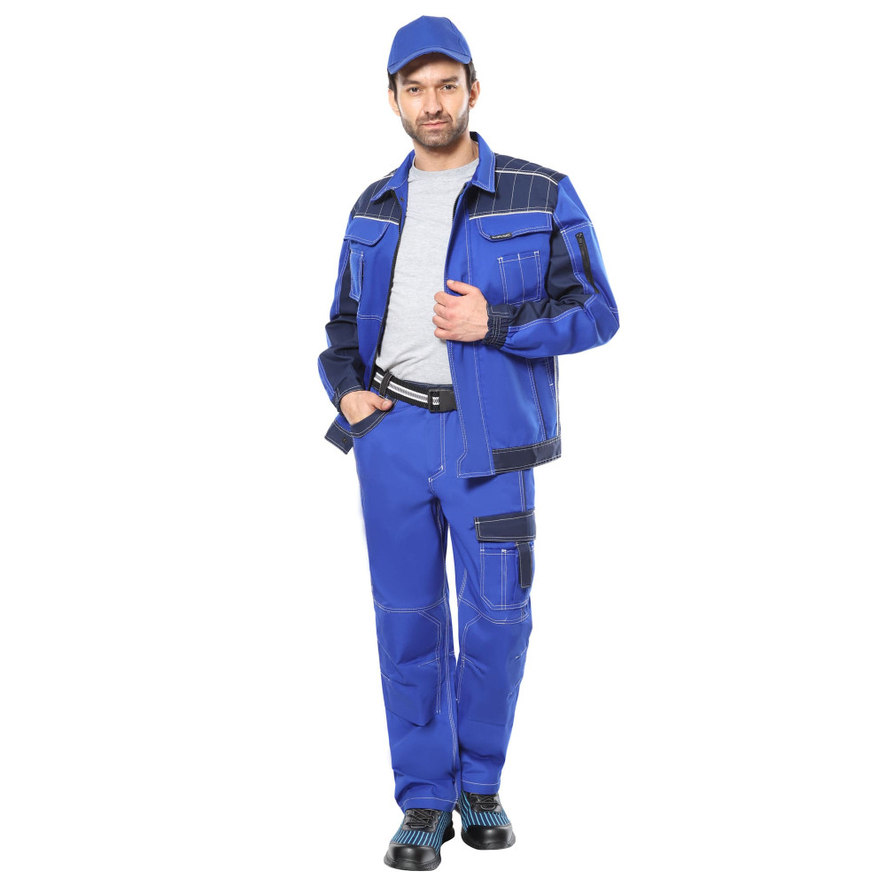 Материал верха основой: ткань смешанная, полиэфирнохлопковая, с водоотталкивающей пропиткой (ВО), пл. 245 г/м², состав 65% ПЭ, 35% ХБ, Цвет: васильковый