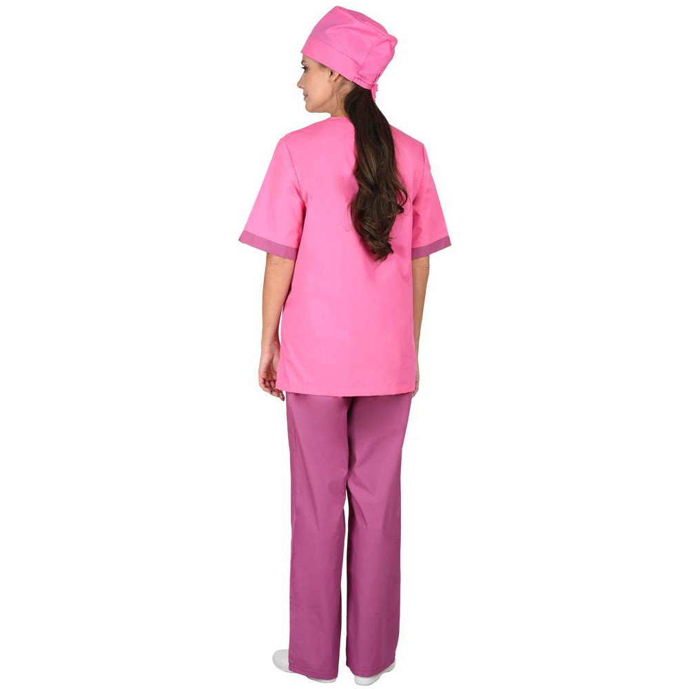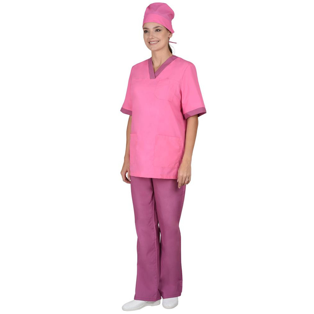 блузы, брюк и колпака. Блуза прямого покроя с V-образным вырезом горловины. На полочке