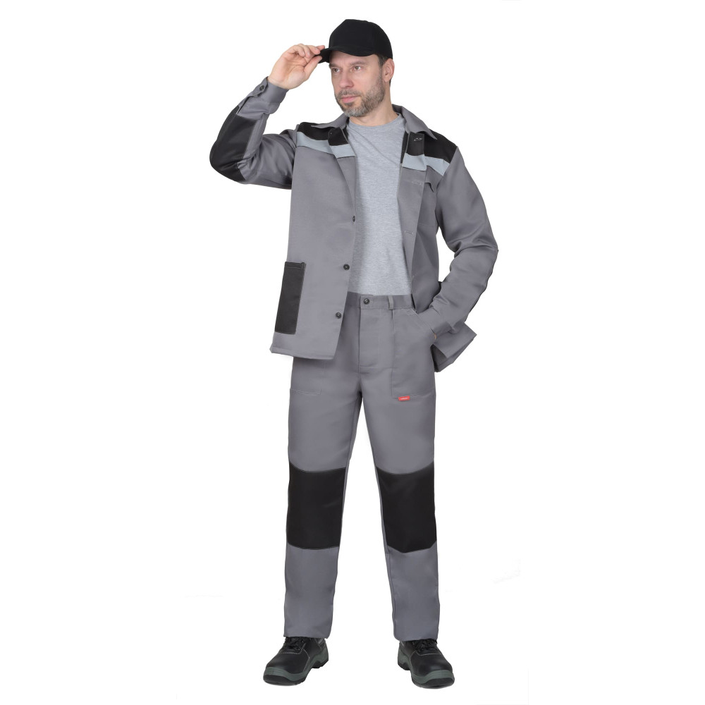 Костюм СИРИУС-СТАНДАРТ куртка, брюки ср.серый с черным СОП 50мм