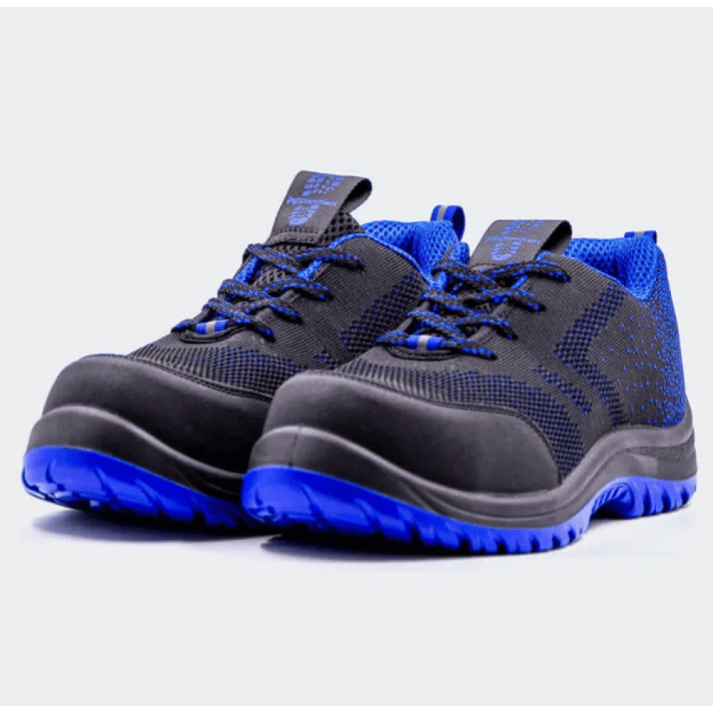 Рабочие кроссовки с композитным подноском с ударной нагрузкой до 200 Дж. Лёгкие и комфортные при носке кроссовки изготовлены по технологии Flyknit - компьтерная вязка комбинированной нитью из полиэфирной пряжи, микрофибры и терилена. Терилен пропускает воздух и позволяет ноге дышать, обладает термической и износостойкостью, водозащитными свойствами, антибактериальным эффектом,отлично сохраняет форму. Подкладка из дышащей трехслойной 3D AirMesh ткани синего цвета. Двойная ПУ/ПУ подошва изготовлена литьевым методом, устойчива к воздействию кислотно-щелочных веществ (до 20%), масло-бензольных соединений и нефтепродуктов. Рабочая температура эксплуатации кроссовок от -35°С до +85°С. Глухой клапан предотвращает попадание нетоксичной пыли, влаги и грязи внутрь. Анатомическая стелька из ЭВА обеспечивает комфорт носки и снижает нагрузку на суставы ног