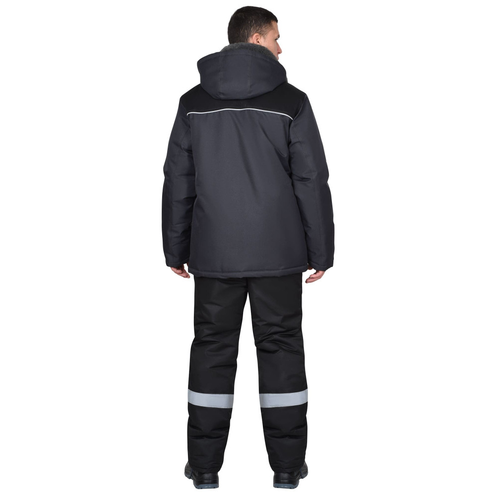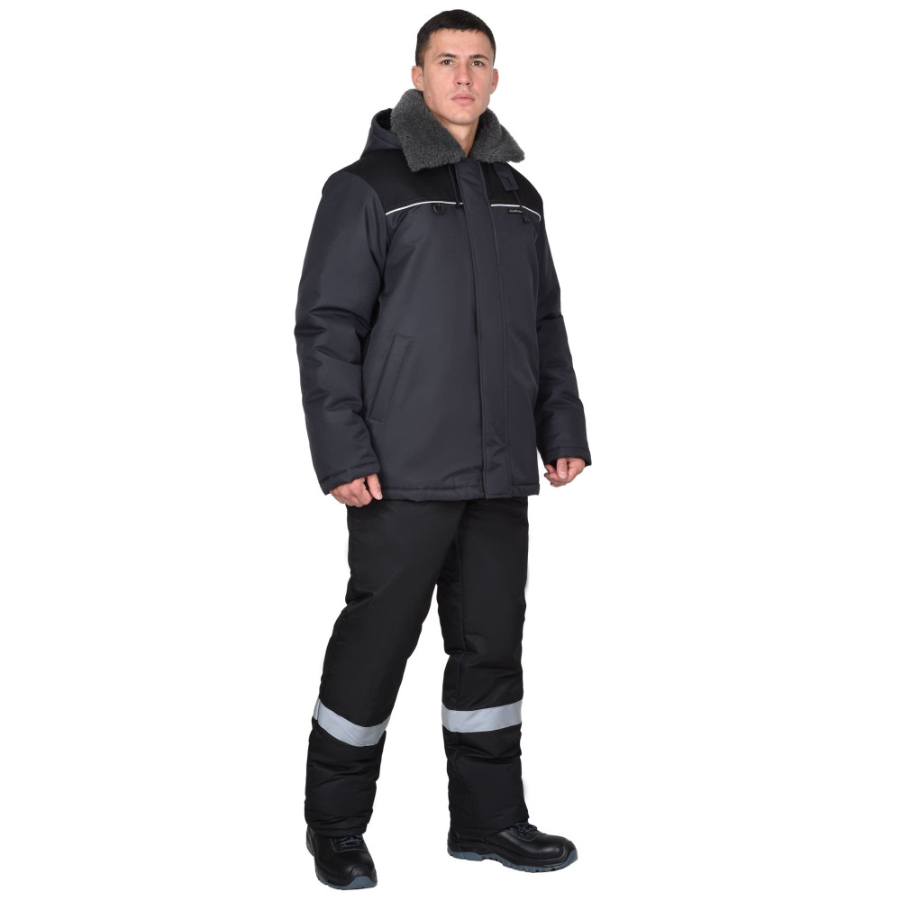 Куртка прямого силуэта, удлинённая, с креплением для бейджа, с меховым отложным воротником, с центральной застёжкой на молнию от горловины до низа, накрытую ветрозащитным клапаном с потайными липучками. Куртка с нижними прорезными карманами с листочками. Рукава втачные с внутренними трикотажными манжетами. Куртка со съемным капюшоном, который пристегивается к горловине куртки при помощи пуговиц. Подкладка куртки утепленная, с левой стороны подкладки накладной карман с верхним горизонтальным входом, застегивается на липучку. В куртке предусмотрен СВ-кант, для обеспечения сигнальной видимости.
