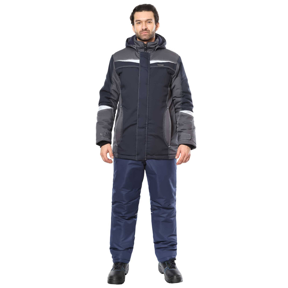 Ткань верхаСмесовая с ВО пропиткой | УтеплительТермофилл 150 гр/м.кв | ЦветСиний, цвет отделки - Т. серый |