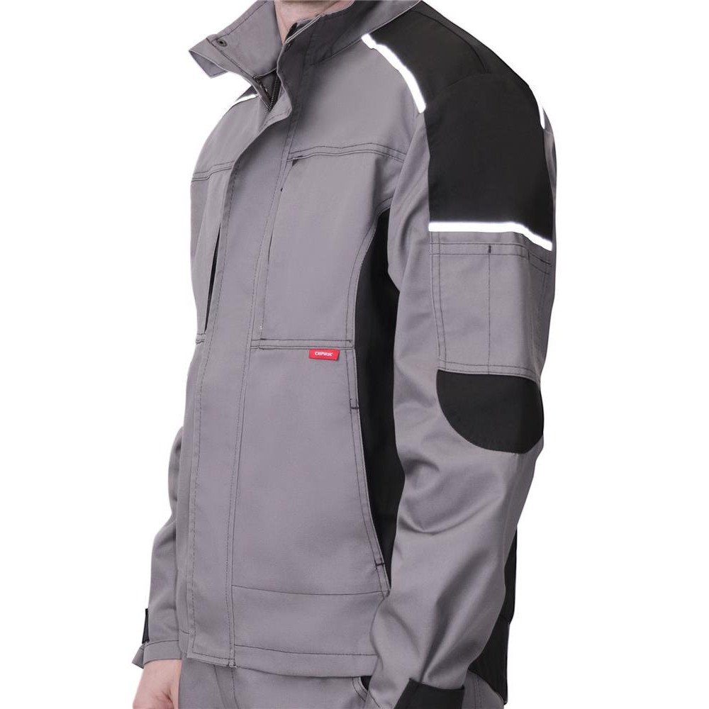 Куртка двухцветная, прямого силуэта, укороченная, с воротником стойка, с центральной застёжкой на молнию от края воротника до низа, накрытую ветрозащитной планкой и внутренней короткой планкой по правому борту, с нагрудными карманами с молнией, с нижними карманами в шве. Рукава втачные, объём по низу рукава регулируется хлястиком с текстильной застёжкой «липучка». В куртке предусмотрен СВ кант.