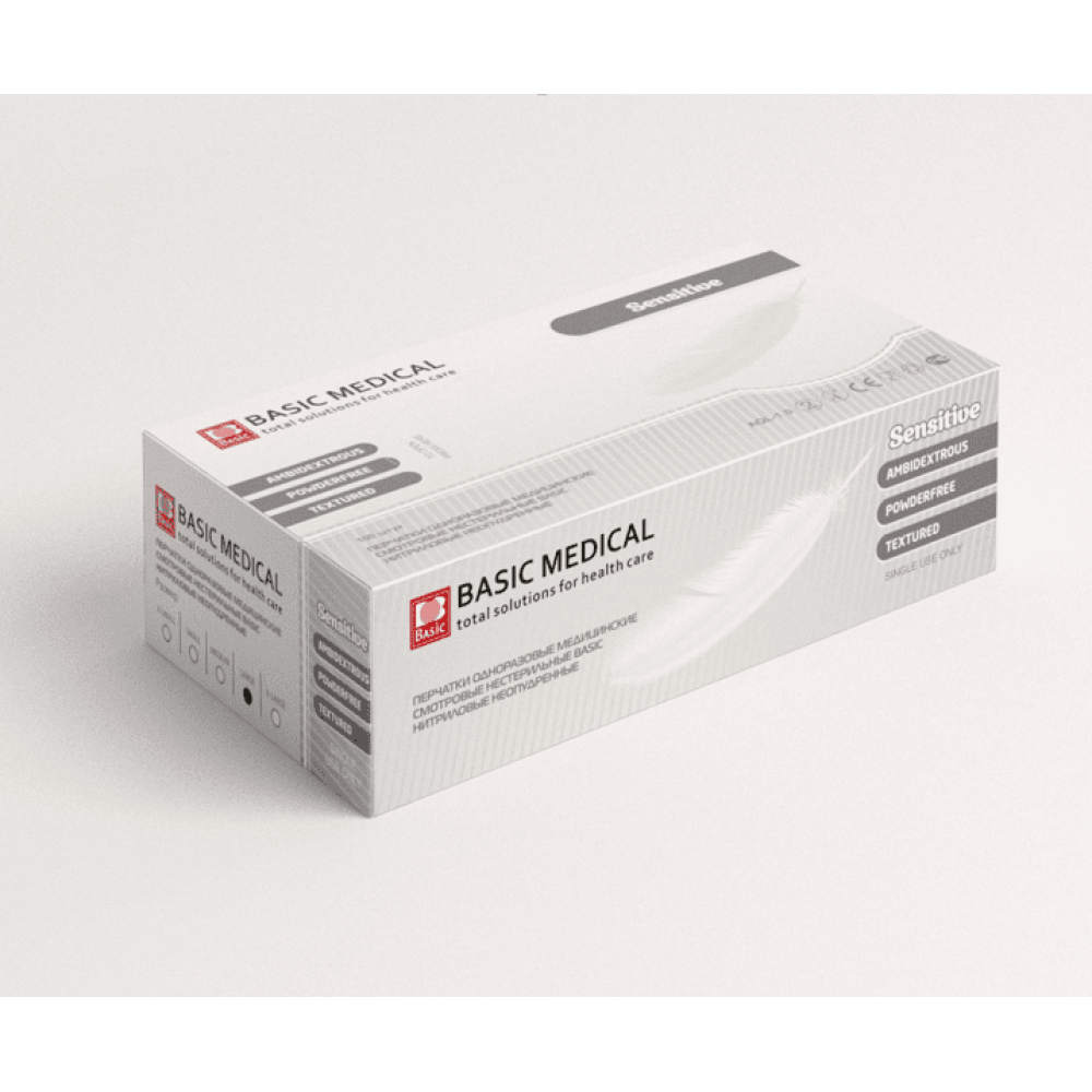 Перчатки нитриловые текстурированные на пальцах цвет голубой Basic Sensitive, 3,5 гр.