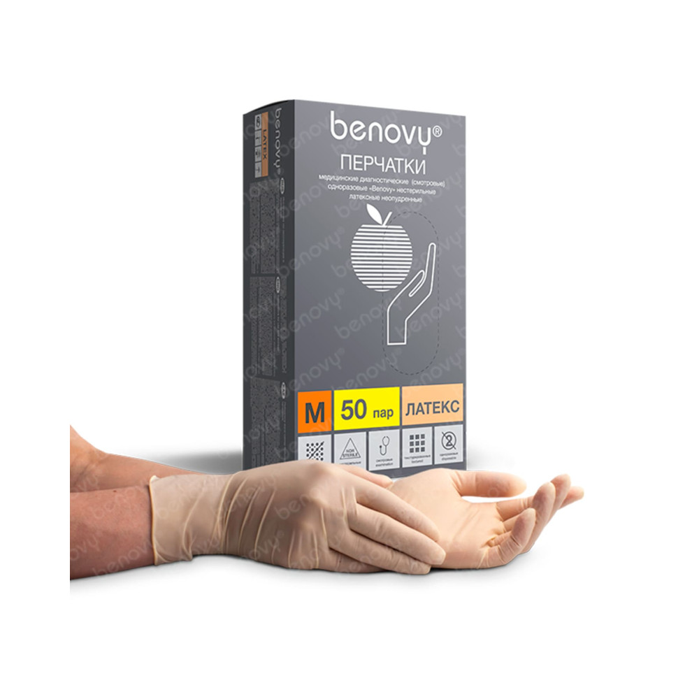 Технические характеристики Перчатки одноразовые Benovy латексные неопудреные