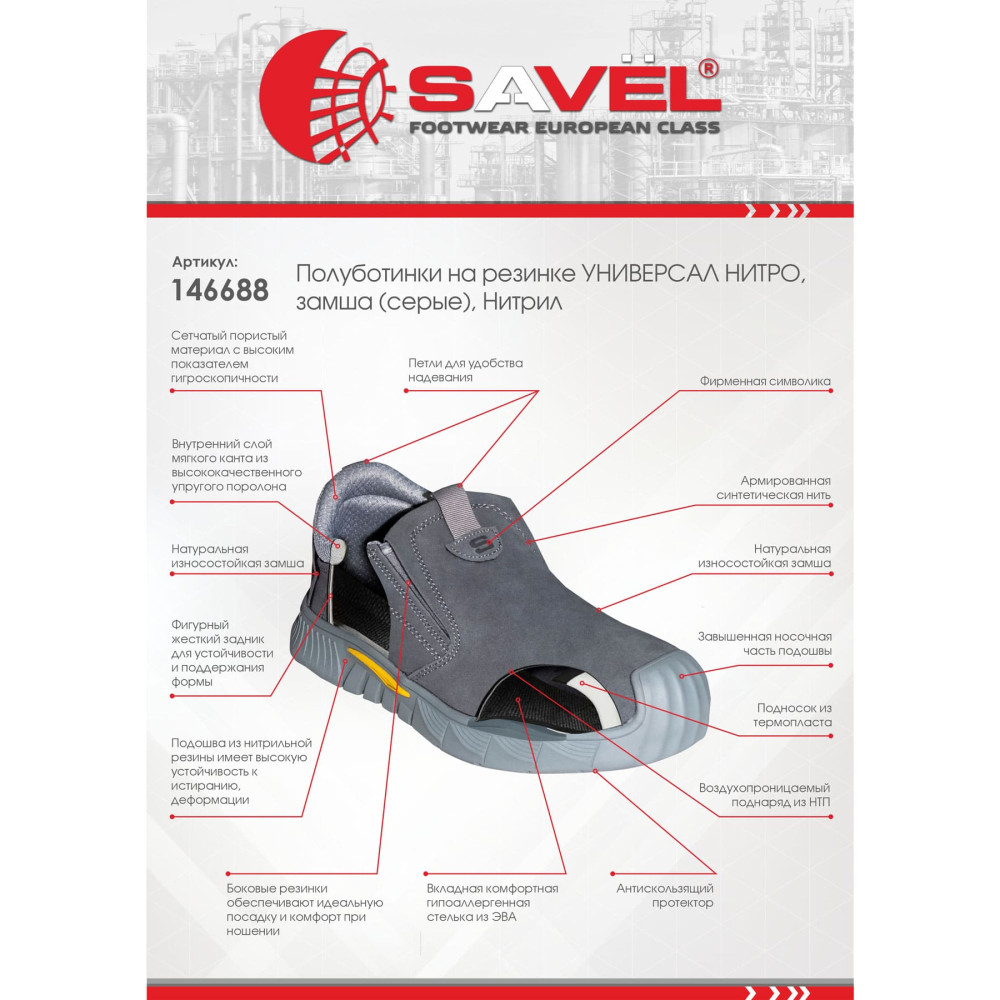 Подошва из нитрильной резины имеет высокую устойчивость к истиранию, деформации и не скользит.