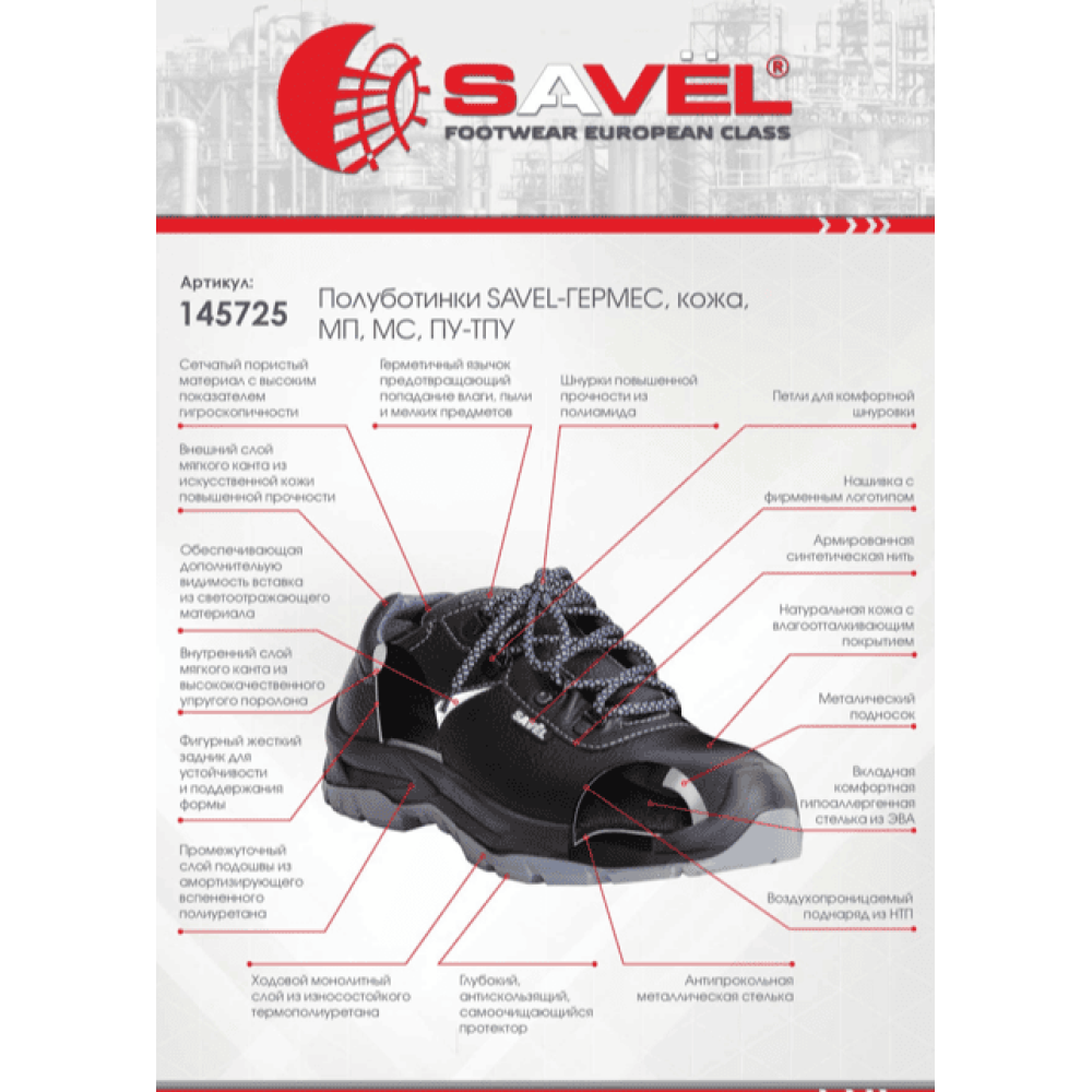 Обувь серии "SAVEL-ГЕРМЕС" предназначена для работы в нефтегазовой, горнодобывающей, энергетической, химической промышленности, на транспорте, в агропромышленном комплексе и сервисных службах.