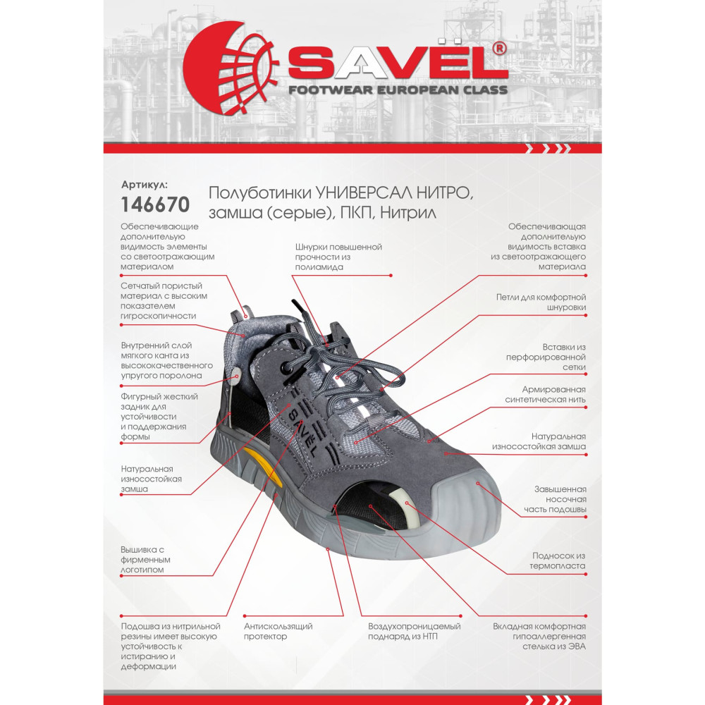 Полуботинки обладают не только всеми преимуществами защитной обуви, но так же отличаются качественным спортивным дизайном и привлекательным внешним видом.