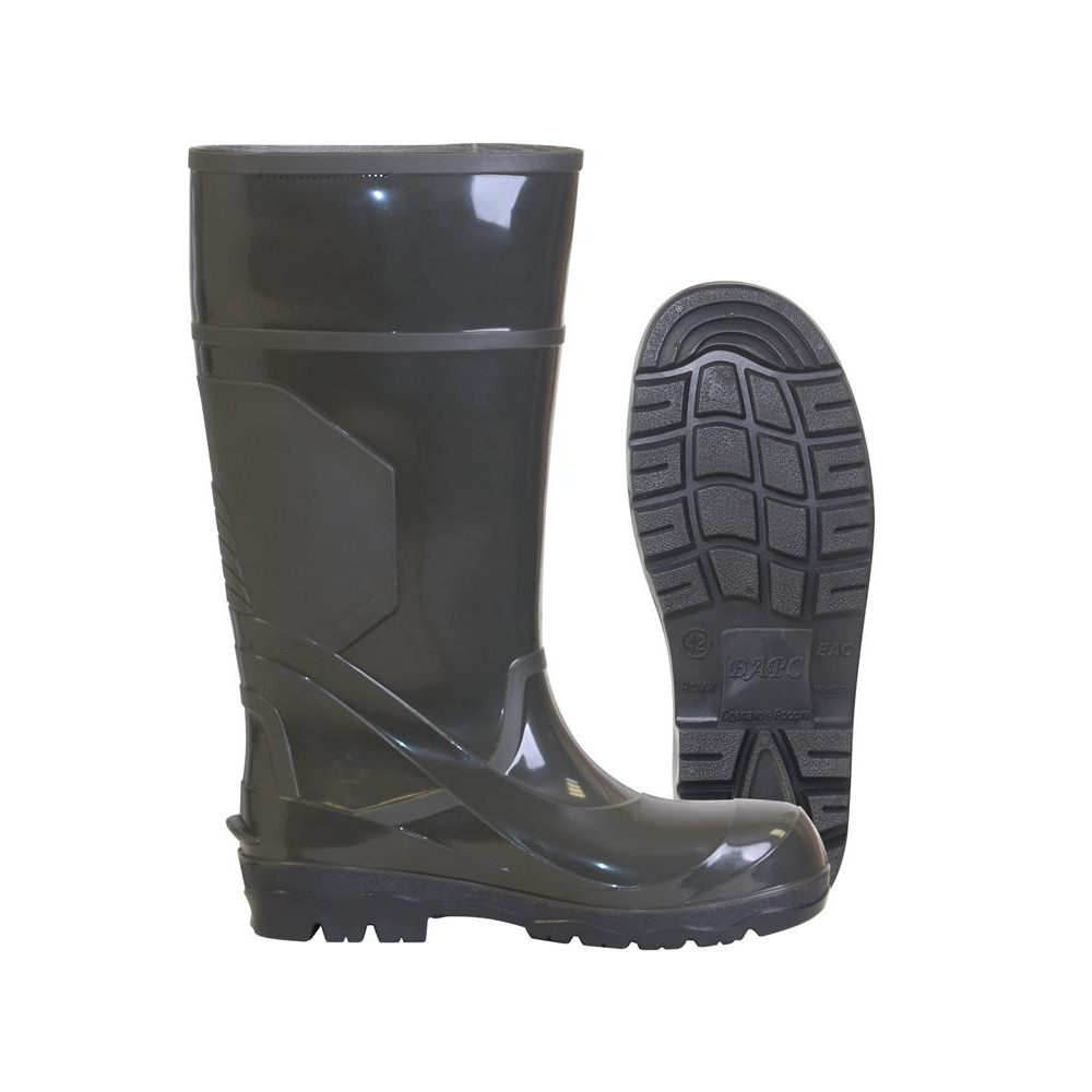 Современная модель сапог из поливинилхлорида (100% ПВХ), изготовленная методом двухкомпонентного литья. Подошва маслобензостойкая и кислотощелочестойкая, имеет протектор подошвы с выраженным рельефным рисунком, высота профиля протектора подошвы – 5мм, высота профиля протектора каблука - 10 мм, стойкая к истиранию, предотвращает скольжение на любых видах грунта и зажиренных поверхностях. Удобная форма колодки способствует длительной и комфортной носке. В пяточной части находится шпора для удобства снятия. Подкладка выполнена из хлопчатобумажного трикотажного полотна.
