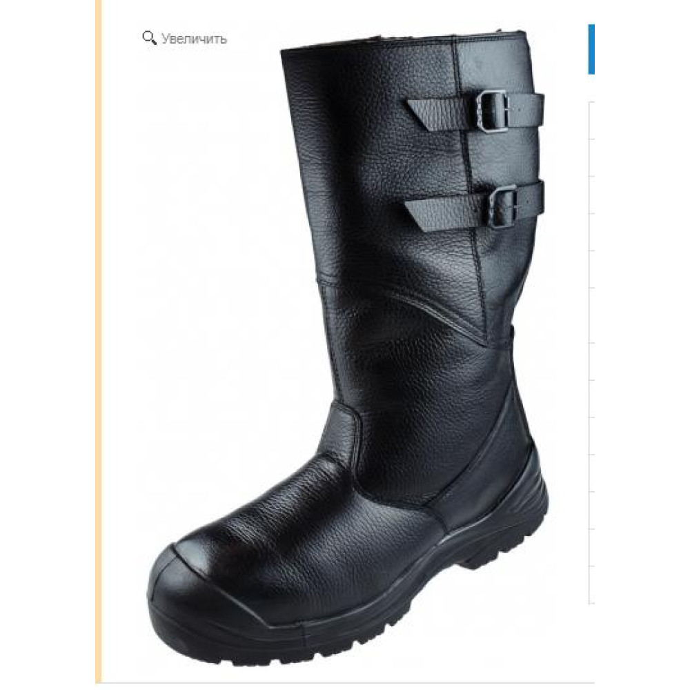 Сапоги рабочие зимние с регулируемым голенищем из натуральной кожи с утеплителем из натурального меха с поликарбонатным подноском на подошве из ПУ+резиновая накладка