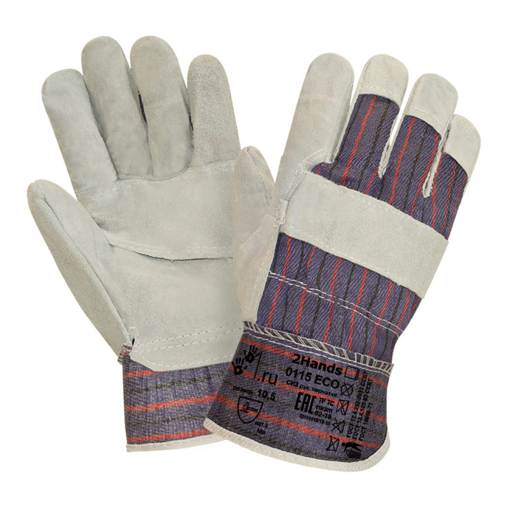 комбинированные, х/б ткань со спилком, ладонная часть из двух частей спилка,