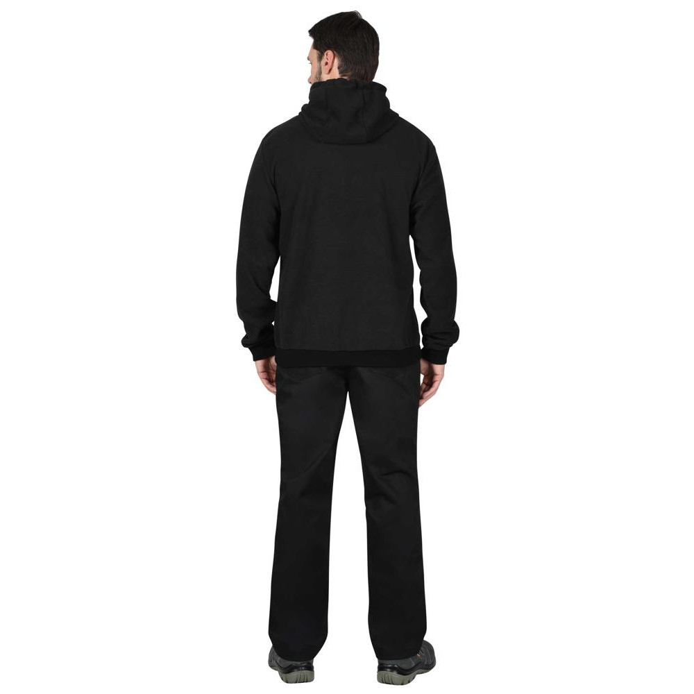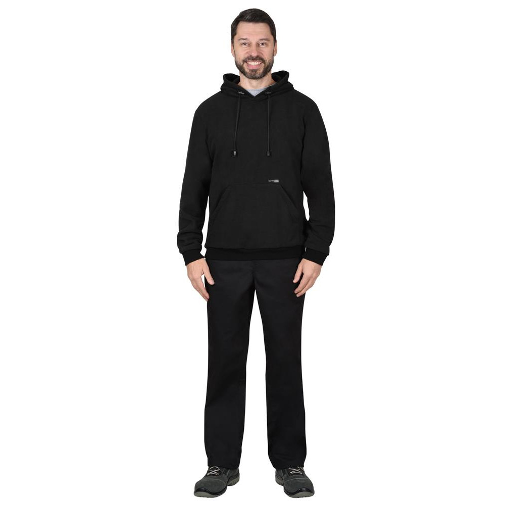 Толстовка прямого силуэта; без центральной застежки; с втачным капюшоном; с нижним накладным большим фигурным карманом с боковыми наклонными входами. Рукава втачные с притачными манжетами. Низ куртки обработан притачным поясом из трикотажного полотна.