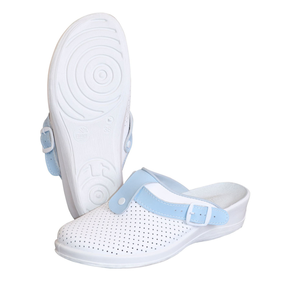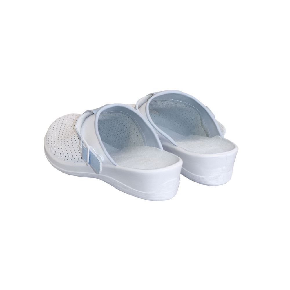 Технические характеристики Туфли Сабо КОМФОРТ белые с голубым натуральная кожа