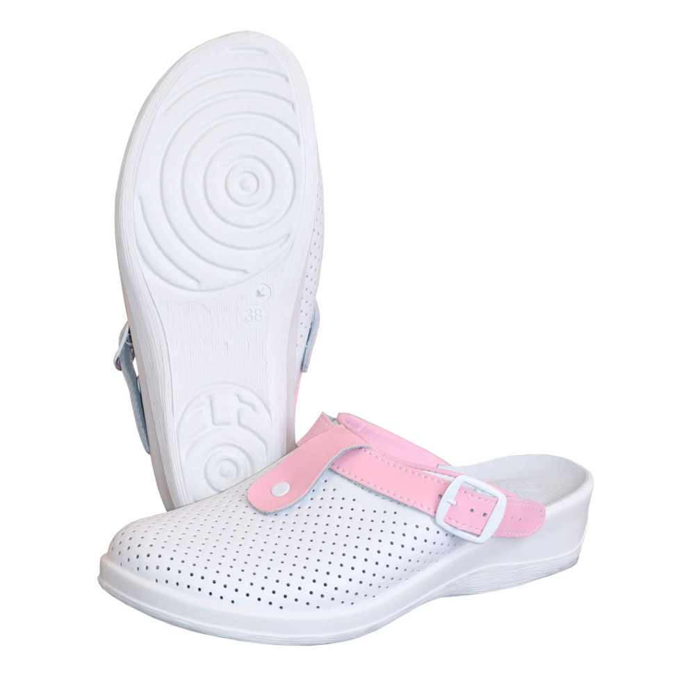 Технические характеристики Туфли Сабо КОМФОРТ белые с розовым натуральная кожа