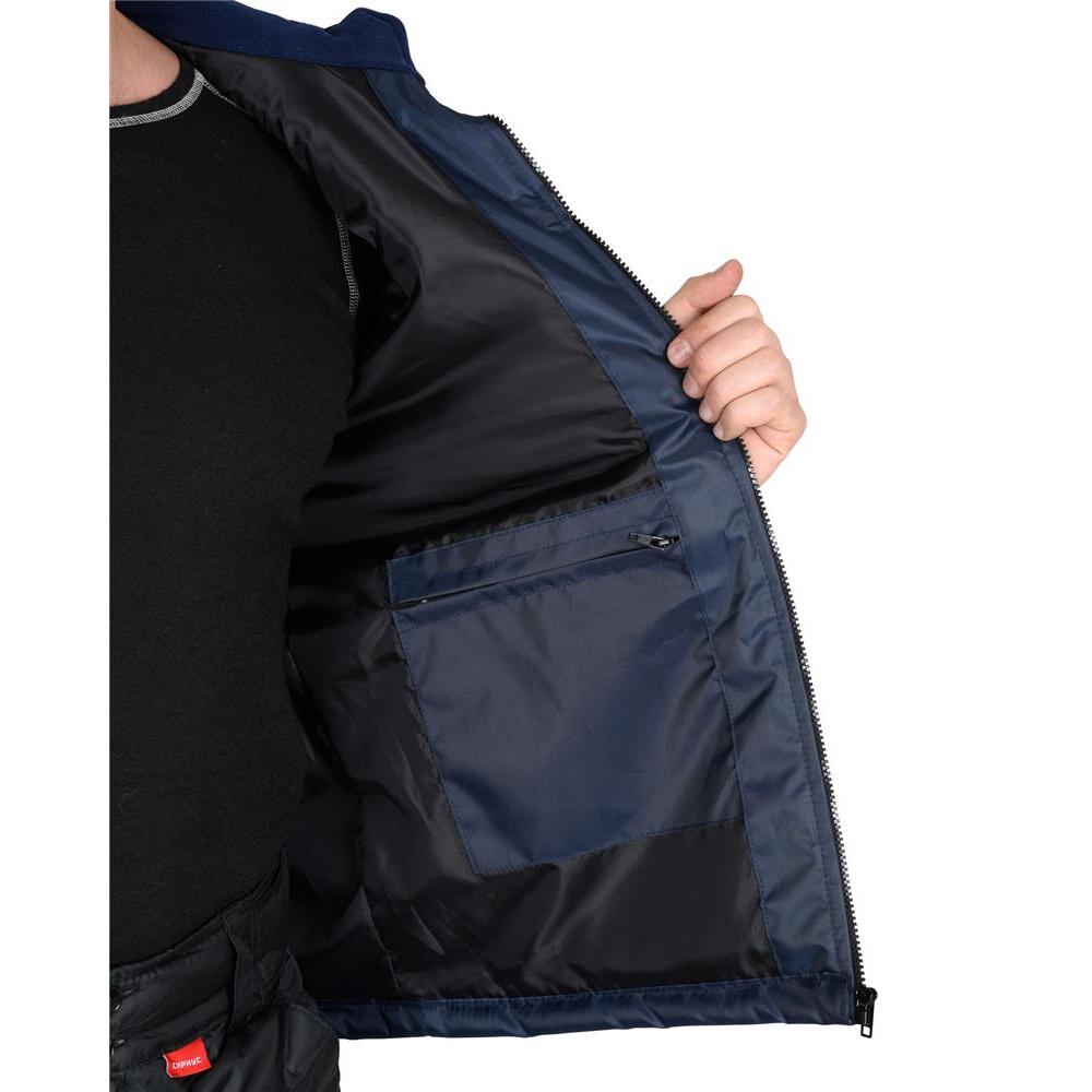 Жилет прямого силуэта, утеплённый, с притачной подкладкой, с центральной застёжкой на тесьму - "молния", с воротником стойка, с прорезными карманами с "листочкой" с втачными концами, с наклонным входом.