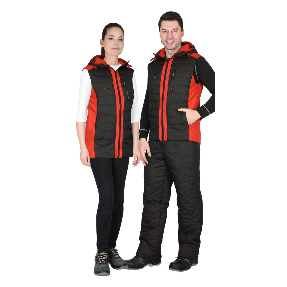 Жилет СИРИУС-УРБАН утепленный с капюшоном черный с красным