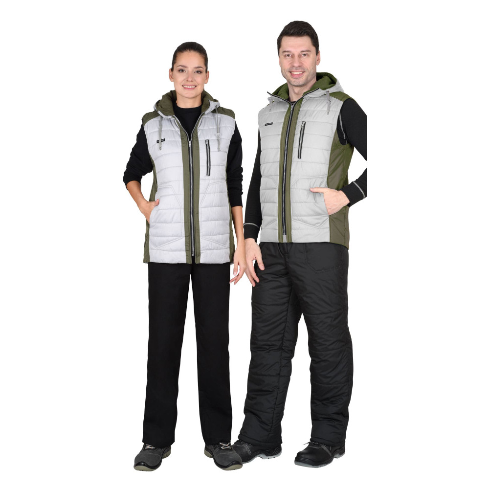 Жилет СИРИУС-УРБАН утепленный с капюшоном жемчужный с оливковым